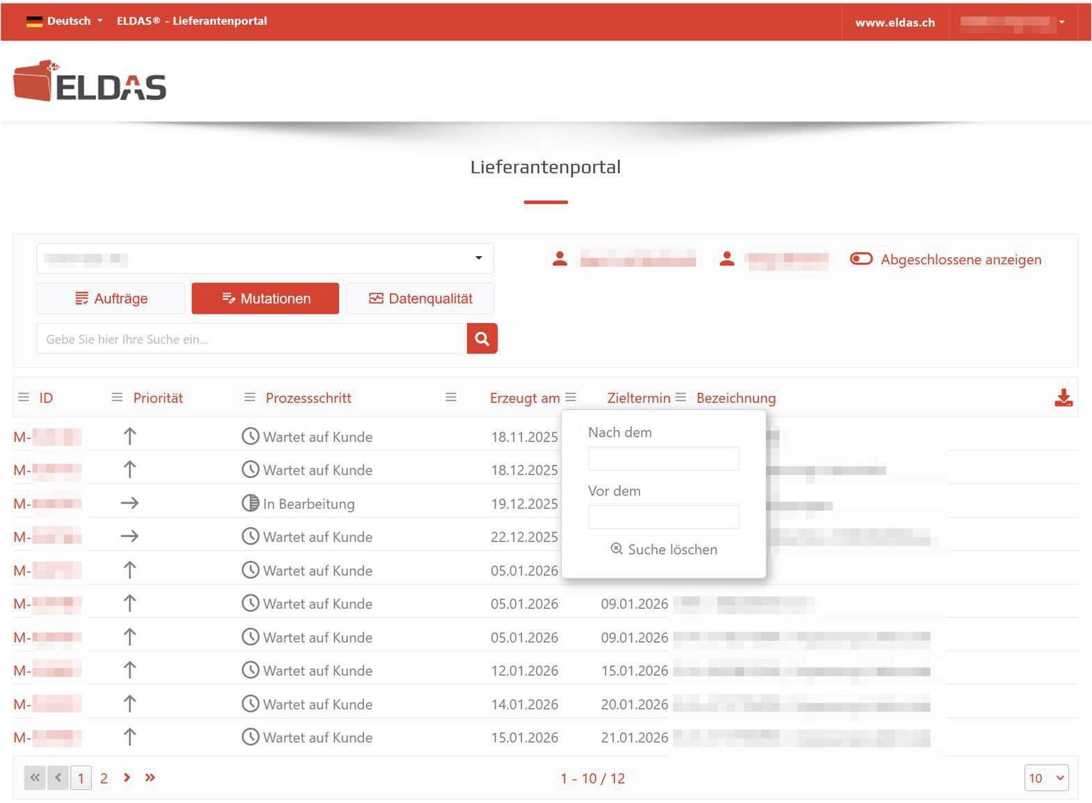 Das Layout des Lieferantenportals wurde modernisiert, um die Übersicht und Bedienbarkeit zu erhöhen. Gleichzeitig wurden die Such- und Filterfunktionen verbessert. So kann in Spalten nebst der Sortierung nun auch gefiltert werden. Die Tabellendarstellung zeigt nun standardmässig nur die ersten 10 Datensätze, was zu einer besseren Performance beim Nachladen der Daten führt. Anregungen zu weiteren gewünschten Funktionalitäten sind jederzeit willkommen.